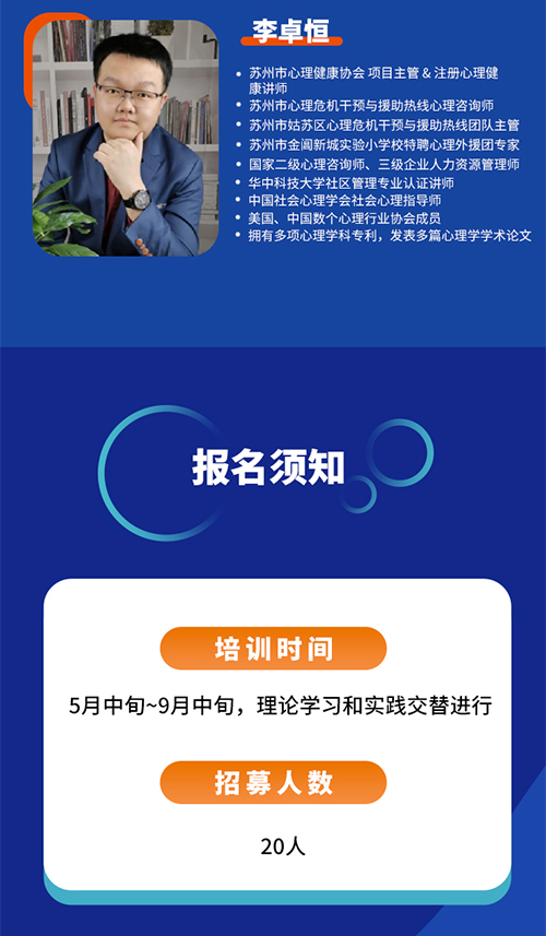 苏州市心理健康协会 临床心理师培训 【 第一期】 招募开启