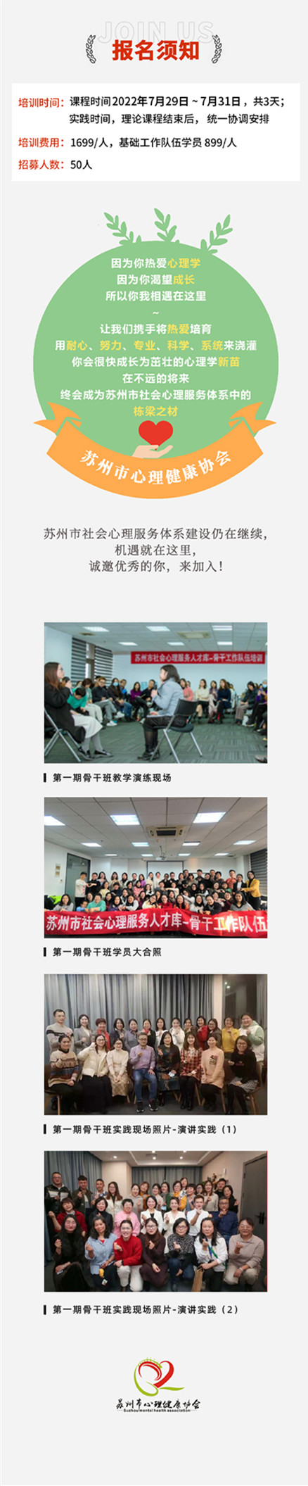 第6期 苏州市社会心理服务骨干工作队伍招募开启 系统学习专业知识,展示实践学习成果,跻身专业心理服务人才队伍