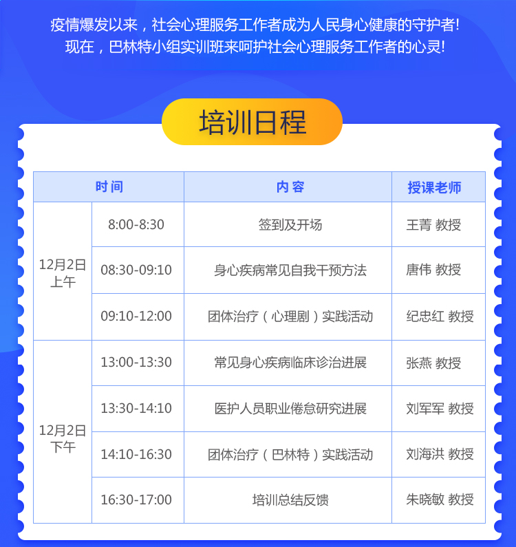 由苏州市广济医院主办的“疫情时代医护人员身心健康照料暨巴林特小组实训班”将于2022年12月2日在线上举办