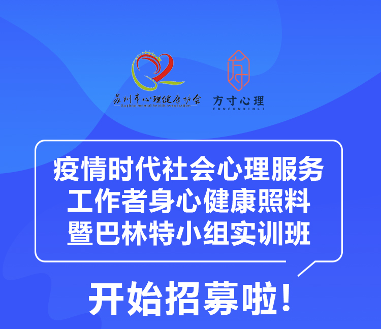 由苏州市广济医院主办的“疫情时代医护人员身心健康照料暨巴林特小组实训班”将于2022年12月2日在线上举办。