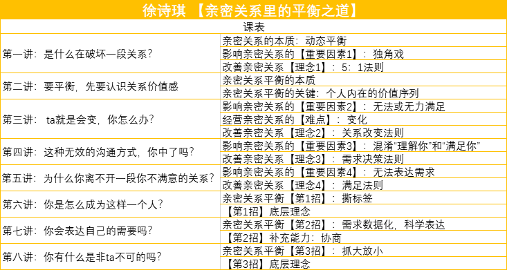 预,徐诗琪老师对【亲密关系】建立了自己独特、